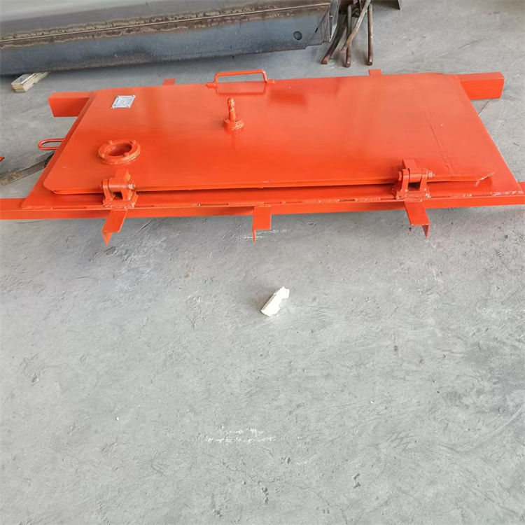 避难硐室门有门扇、门框为平钢板、筋板、型钢等组焊而成;锁闭机构采用双道紧密锁;门枢采用推力球轴承,方便开启。