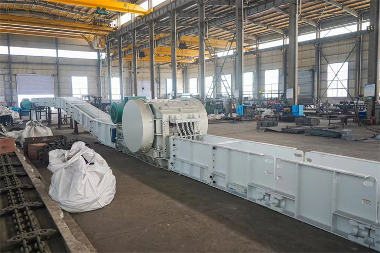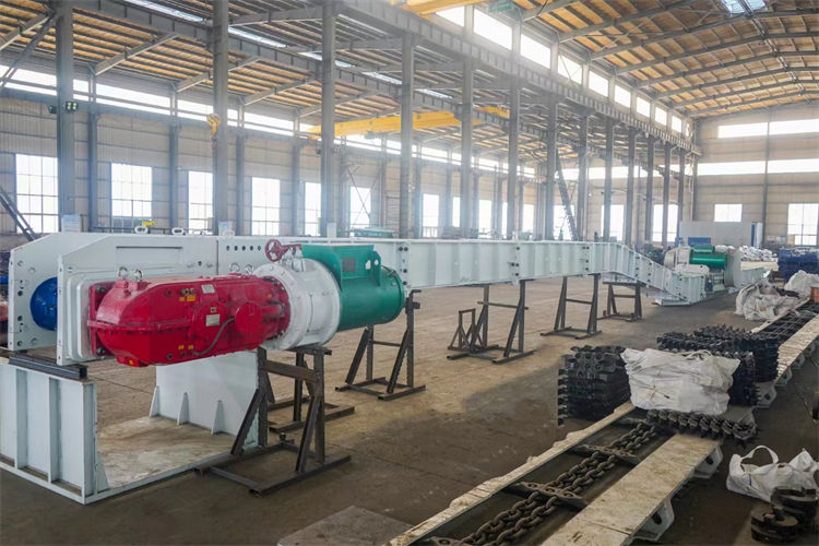 机身是输送机的送煤部分,由溜槽和刮板链组成。溜槽是输送机机身的主体,是荷载和刮板链的支承和导向部件,由钢板焊接压制成型,分为中部标准溜槽、调节溜槽和连接溜槽。刮板链由链环和刮板组成。