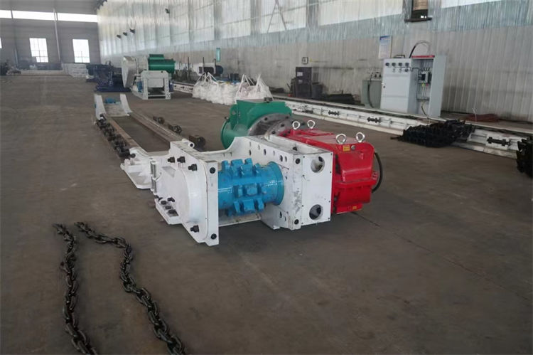 机头部是运输机的传动装置,包括机头架、电动机、液力联轴器、减速器、机头主轴和链轮组件等。作用是电动机通过联轴器、减速器、机头主轴和导链轮,带动刮板在溜槽内运行,将煤输送出来。