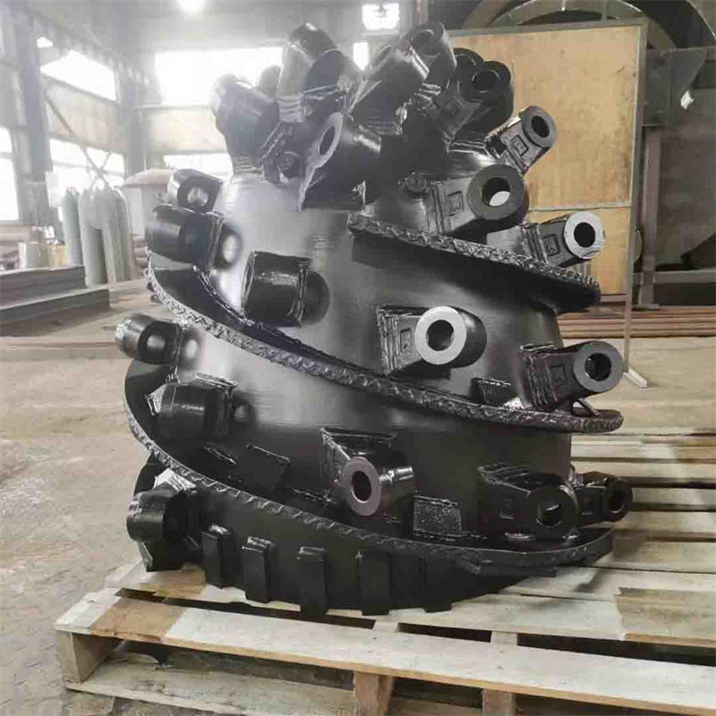 采煤机截割部由固定减速箱、摇臂、滚筒、挡煤板及调高系统组成。截割部的作用是将电动机的动力经过减速后,传递给截割滚筒,以进行割煤,并且通过滚筒上的螺旋叶片将截割下来的煤装到工作面输送机上。为提高螺旋滚筒的装煤效果,在滚筒后面还装有挡煤板。
