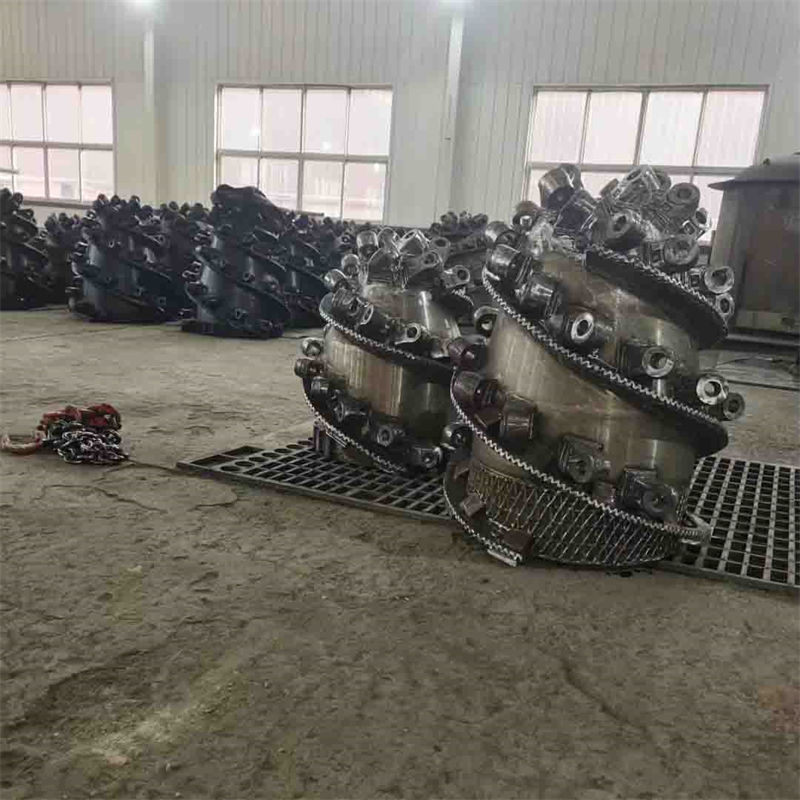 (2)滚筒的截割速度(截齿刀尖的圆周切向速度)一般为4m/s-5m/s,因而采用不同直径的滚筒时,其转速应相应地改变,故在截割部减速箱中一般都有一对可更换的快速齿轮。通过改变齿轮的齿数,可以改变滚筒的转速。
